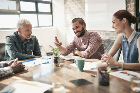 business partners discussing documents and ideas at meeting