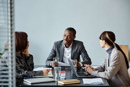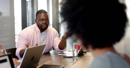 Two diverse business people are having great business conversation in the meeting