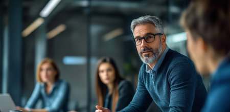 Collaborative meeting among diverse business workers in a modern office