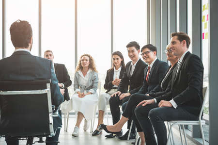 Business People Meeting Conference Discussion Corporate Concept in office. Team of newage Multiethnic Diverse Busy Business People in seminar Concept.