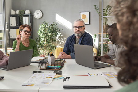 Group of businesspersons having different age in creative business discussing work in the office