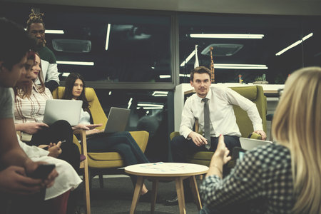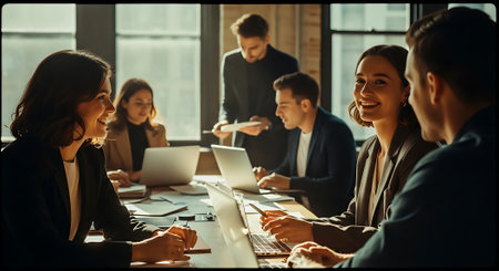 Successful friendly business team having meeting in office