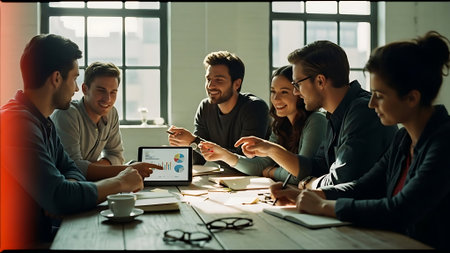 Team collaborating on business strategy during an engaging office presentation