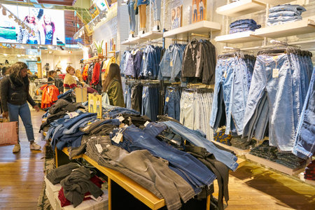 MILAN, ITALY - CIRCA NOVEMBER, 2017: interior shot of Pull&Bear store in Milan. Pull&Bear is a Spanish clothing and accessories retailer based in Naron, Galicia.