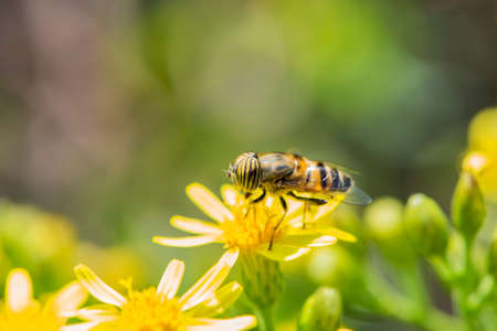 Macro Shot of Bee Pollinating Yellow Flower in Nature