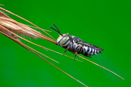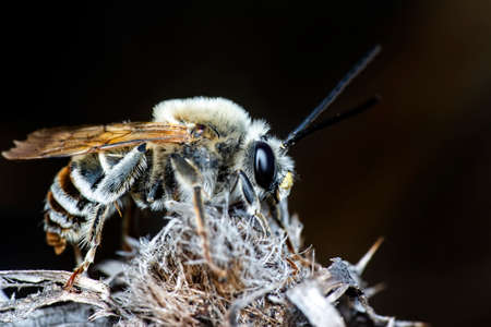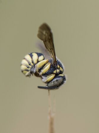 Dianthidium simile, bee Macro , Closeup of face fluffy head of bee, Flying insect