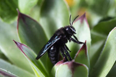 Violet carpenter bee, Xylocopa violacea on the green plant