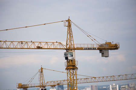 Construction site with cranes and building under construction, Moscow, Russia
