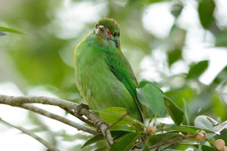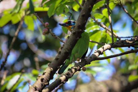 Muller's Barbet (Megalaima oorti) stay on the branch