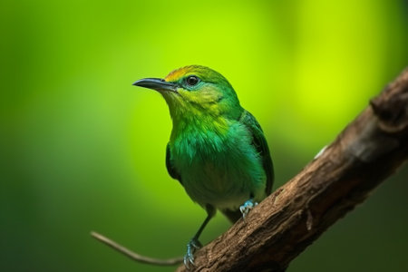 Generative AI : Beautiful bird Orangebellied Leafbird Chloropsis hardwickii resting on a branch