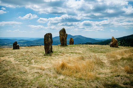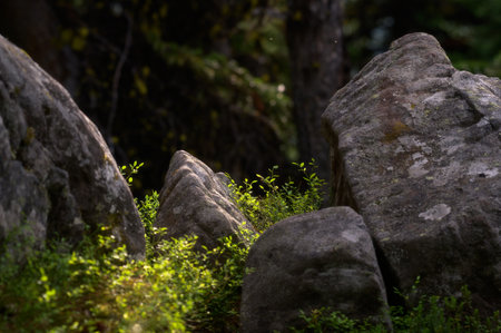 Stone monoliths in Stiavnica Mountains, Slovak republic. Hiking theme.