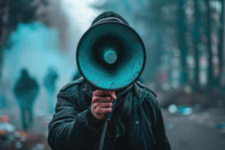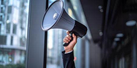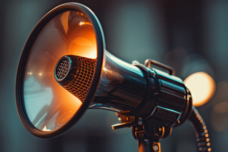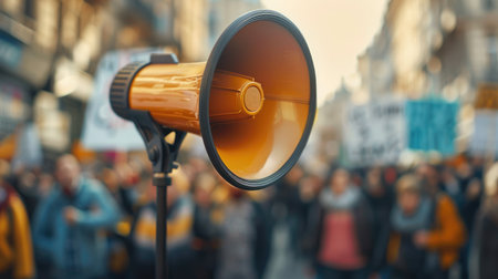Powerful image of a megaphone at a protest, with a blurred background, symbolizing amplified voices for social justice.