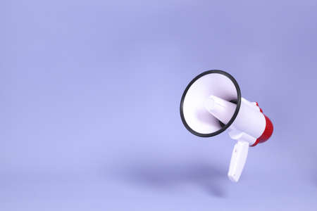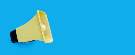 Megaphone or hand speaker isolated on blue and pink color background with copy space
