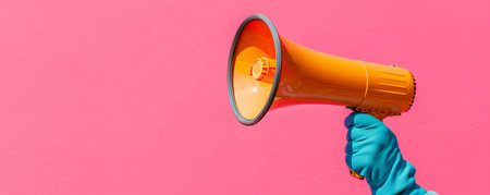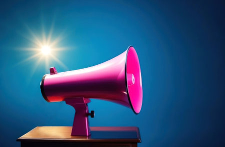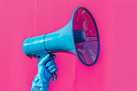 Vibrant megaphone against a striking blue background, casting a bold statement with its radiant pink hues. Perfect for your impactful messaging needs