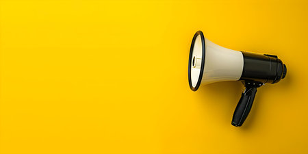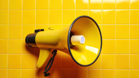 Black and white megaphone on vibrant yellow background ideal for conveying important messages in marketing or communication projects. Concept Advertising, Color Contrast, Communication