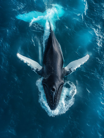 Giant whale in the ocean, a symbol of marine biodiversity and rare fauna