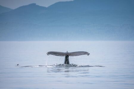 Humpback whale tail in the sea, Alaska, USA. Whale swimming in the ocean. Natural landscape background. whale tail under water