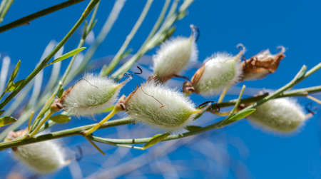 Fruits of Hairy-fruited broom, Cytisus striatus. It is a leguminous shrub native to the Iberian Peninsula and northwestern Africa. Photo taken in Minchones Stream, in the region of La Vera, Caceres, Extremadura, Spain
