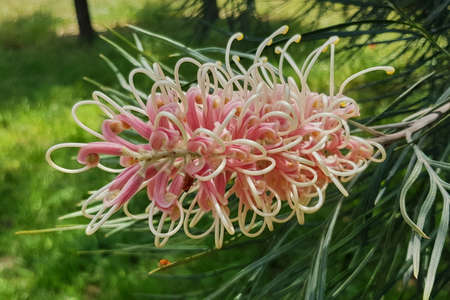 native Australian grevillea semperflorens plant outdoor in beautiful tropical backyard shot at shallow depth of field