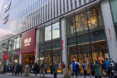 Tokyo, Japan-28 Dec 2025: Signage and shopfront of Muji in Tokyo, Japan. It is a Japanese retailer known for its minimalist, high-quality, and functional household goods, apparel, and stationery
