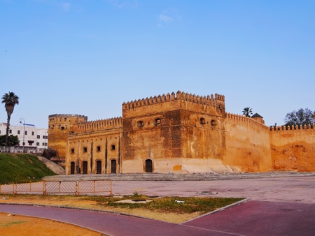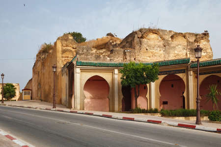 MEKNES, MOROCCO - JUNE 01, 2017: Part of the historical walls in Meknes. Meknes is one of the four Imperial cities of Morocco and the sixth largest city by population in the kingdom.