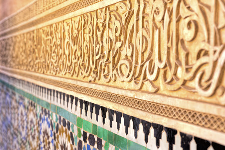 Tipical islamic decoration in a street of Mekens, Morocco. Shallow depth of field