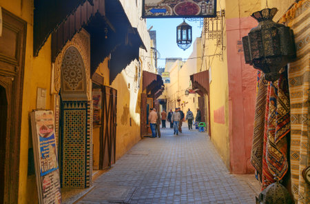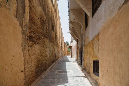 Meknes, Morocco - Jan 16, 2017: On the street of ancient Medina. Meknes is one of four Imperial cities of Morocco