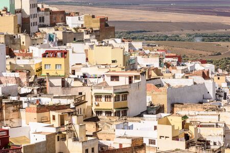 Spectacular aerial view of Moulay Idriss, the holy town in Morocco, named after Moulay Idriss I arrived in 789 bringing the religion of Islam