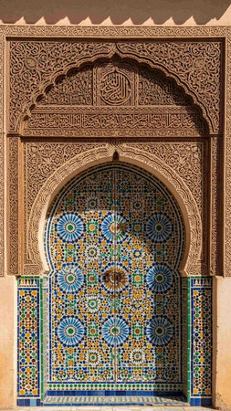 Architecture details of the Nasir al-Mulk Mosque in Morocco