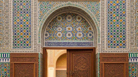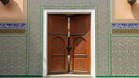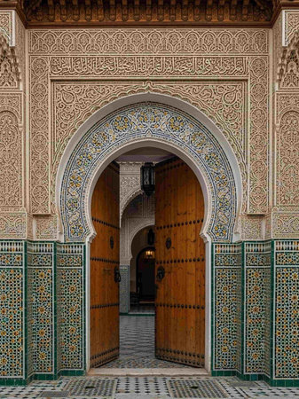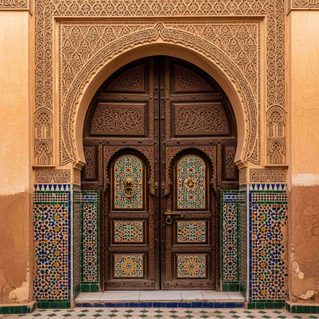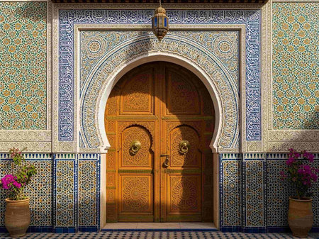 patterns morocco door illustration colors arched, decorative tiles, traditional vibrant patterns morocco door