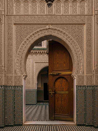 The door of the Al-Qasr Mosque in Fez, Morocco