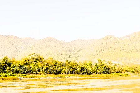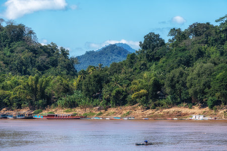 View of the landscape of the river Nam Khan, Luang Prabang, Laos. Copy space for text