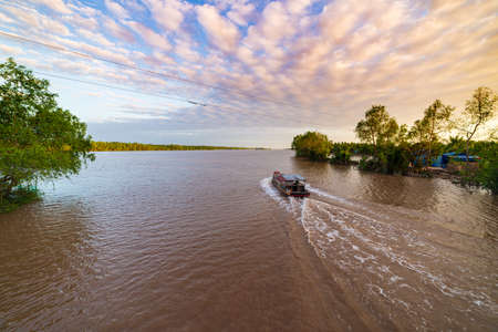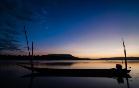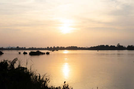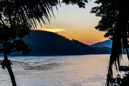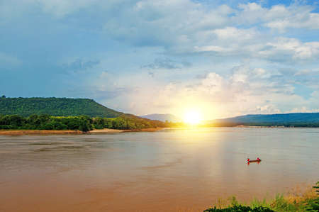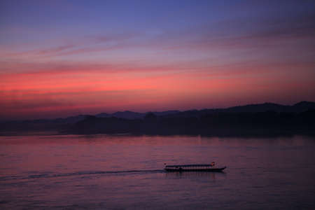 Dusk scene at Mekong River, Golden Triangle, Chiang Saen, Chiang Rai. The Borders between Thailand Myanmar, and Laos