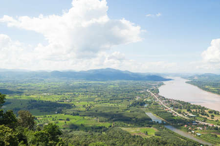 Beautiful landscape view of mekong river from Chiangkhan Glass skywalk at Phu khok ngio big buddha chiang khan district loei thailand.New landmark of chiangkhan district