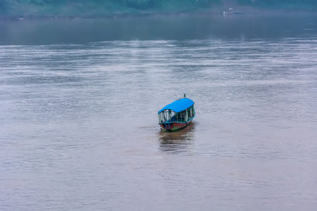Chiangrai,Thailand - October 25, 2018. Boats on the Mekong River in Chiang Sean, Chiangrai, Thailand.