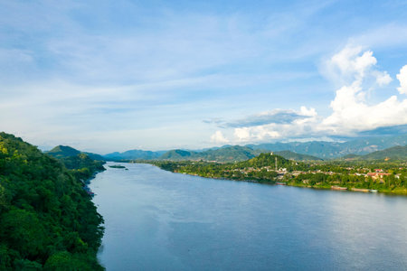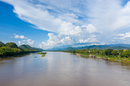 Panorama View of Mekong River at Chiang Saen District, Chiang Rai Province.