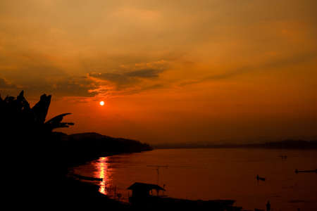 Sunset at The Mae khong river in Chiangsaen, Chiangrai in Thailand