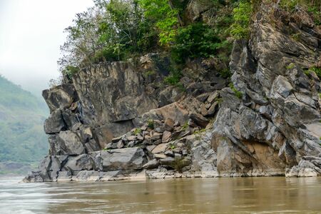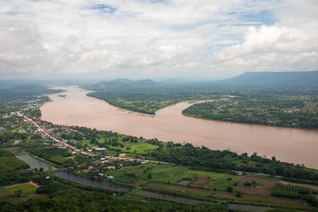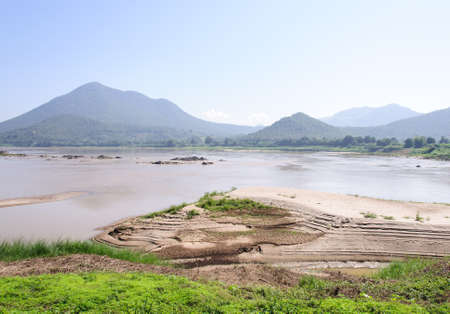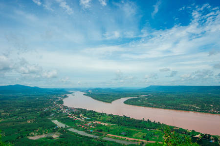 Natural landscape of Mekong River is a muddy color flowing through the mountains, is the border between Thailand and Laos