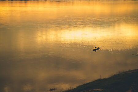 Silhouette of fisherman in Mekong river at Nakhon Panom province of Thailand.