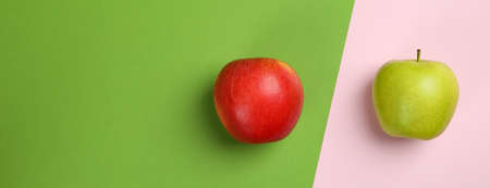 Tasty ripe apples on two tone background