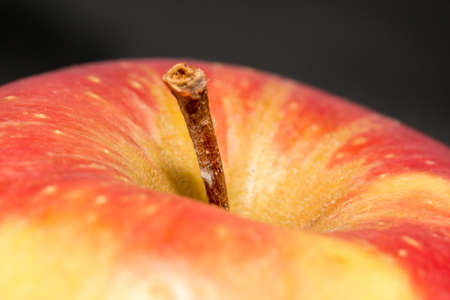One red fresh apple on a black background. Healthy fruit and breakfast