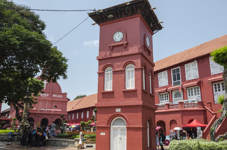 MELAKA, MALAYSIA - April 11, 2018 : View around the Stadthuys building. Historical structure situated in the heart of Malacca City also known as the Red Square.
