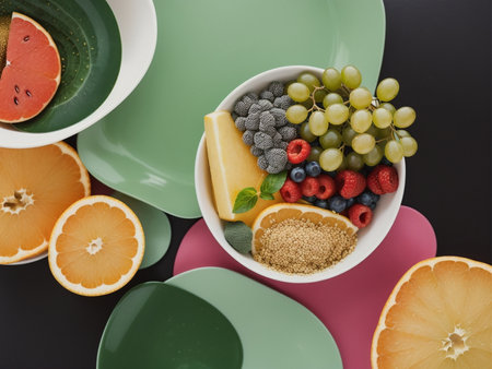 AI Image Fresh Colorful Fruit Plate with Kiwi, Berries, and Citrus