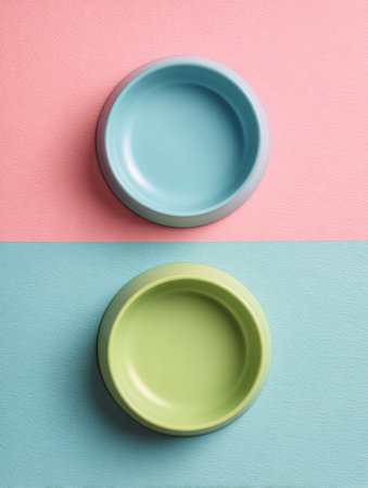 Two colorful pet bowls arranged on a pastel backdrop create an inviting scene perfect for showcasing pet dining products or accessories.