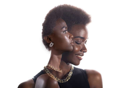 Beauty portrait of beautiful black women wearing lingerie underwear - Pretty african young women posing in studio, concepts about beauty, cosmetology and diversity