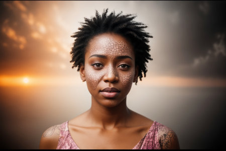 Close-up of african american woman's face with vitiligo