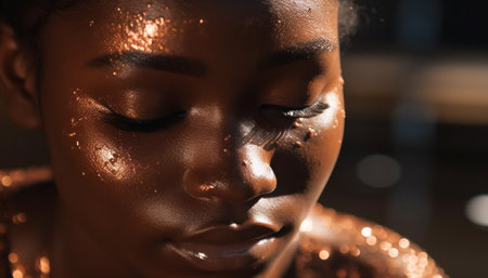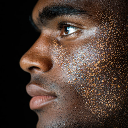 Macro shot showcasing the texture and vibrancy of healthy black skin with soft lighting
