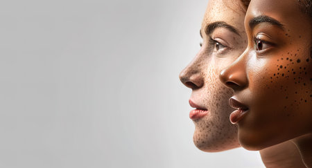 Unity in diversity: close-up of people side by side, illustrating the beautiful contrast and harmony of different skin tones