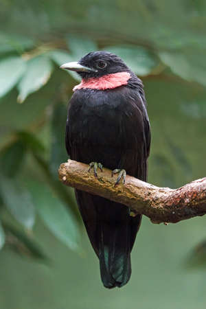 Purple-throated fruitcrow resting on a branch in its habitat