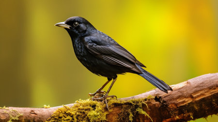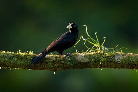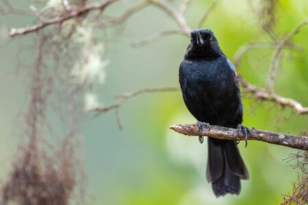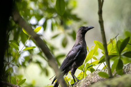 Black crow on a tree branch in the rainforest of Costa Rica